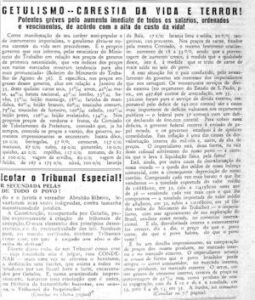 Governo Eurico Gaspar Dutra inicia período repressivo contra sindicatos, partidos e organizações populares.