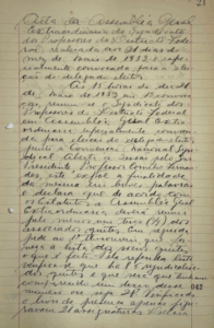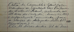 Ata da assembleia geral extraordinária de 21 de maio de 1933 Fonte: Arquivo Sede Centro do Sinpro-Rio