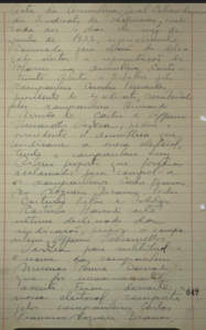 Ata da assembleia geral extraordinária de 12 de junho de 1933 Fonte: Arquivo Sede Centro Sinpro-Rio