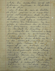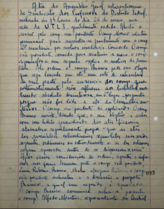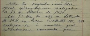 Ata da segunda assembleia geral extraordinária do Sinpro-Rio em 13 de setembro de 1931 Fonte: Arquivo Sede Centro do Sinpro-Rio