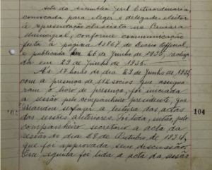 Ata da Assembleia geral para eleição do Conselho Diretor, em 1935