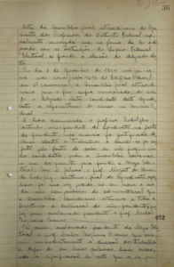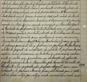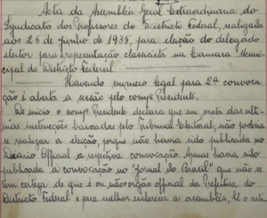 Ata da assembleia geral extraordinária do dia 28 de outubro de 1934 Fonte: Arquivo da Sede Centro do Sinpro-Rio
