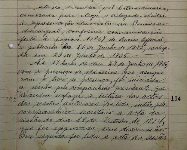 Ata da Assembleia Geral Extraordinária, 29/06/1935