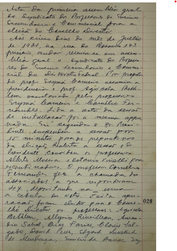 Ata da Primeira Assembleia Geral do Sinpro-Rio, em 05/07/1931