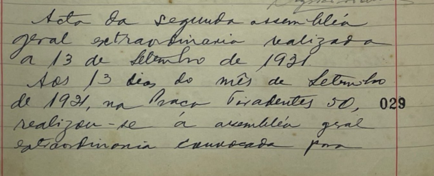 Ata da segunda assembleia geral extraordinária do Sinpro-Rio em 13 de setembro de 1931