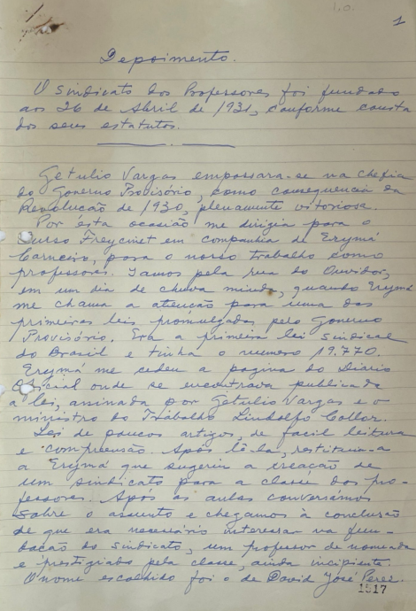 Carta Depoimento (Documento sobre a Fundação do Sindicato, em 1931)