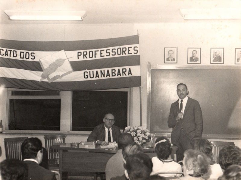 Professor Affonso Saldanha, presidente do Sindicato reeleito pelo voto dos associados, é impedido de tomar posse pela intervenção da ditadura.